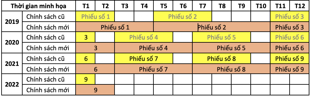 – Phiếu số 3: Sử dụng từ tháng thứ mười một đến tháng thứ mười bốn.