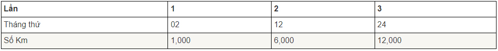 Những lần kiểm tra bảo dưỡng ngoài những lần kiểm tra bảo dưỡng định kỳ miễn phí, khách hàng có trách nhiệm trả tiền công, tiền phụ tùng, vật liệu thay thế.